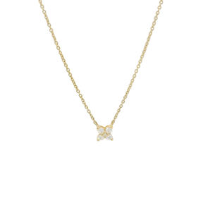 Girocollo in oro giallo 18 kt e punto luce di diamanti con montatura a fiore.