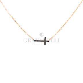 Girocollo Croce sul Fianco in Oro Rosa Diamanti Neri