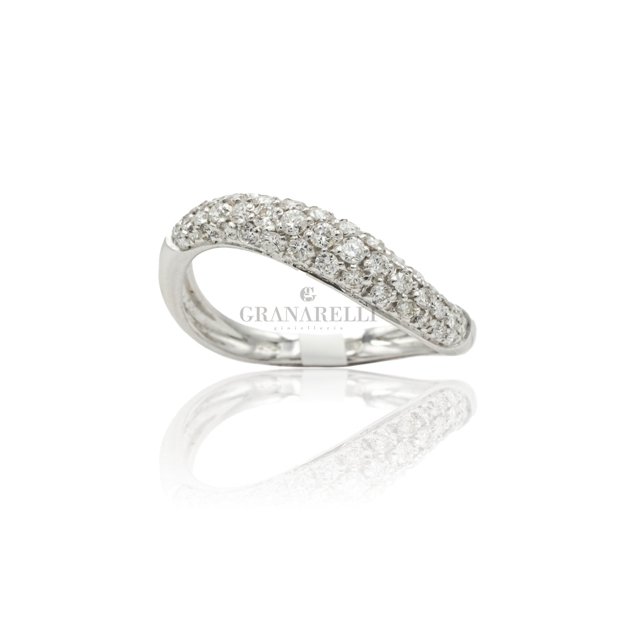Anello fedina ondulata in Oro Bianco 18 kt con pavé di Diamanti.