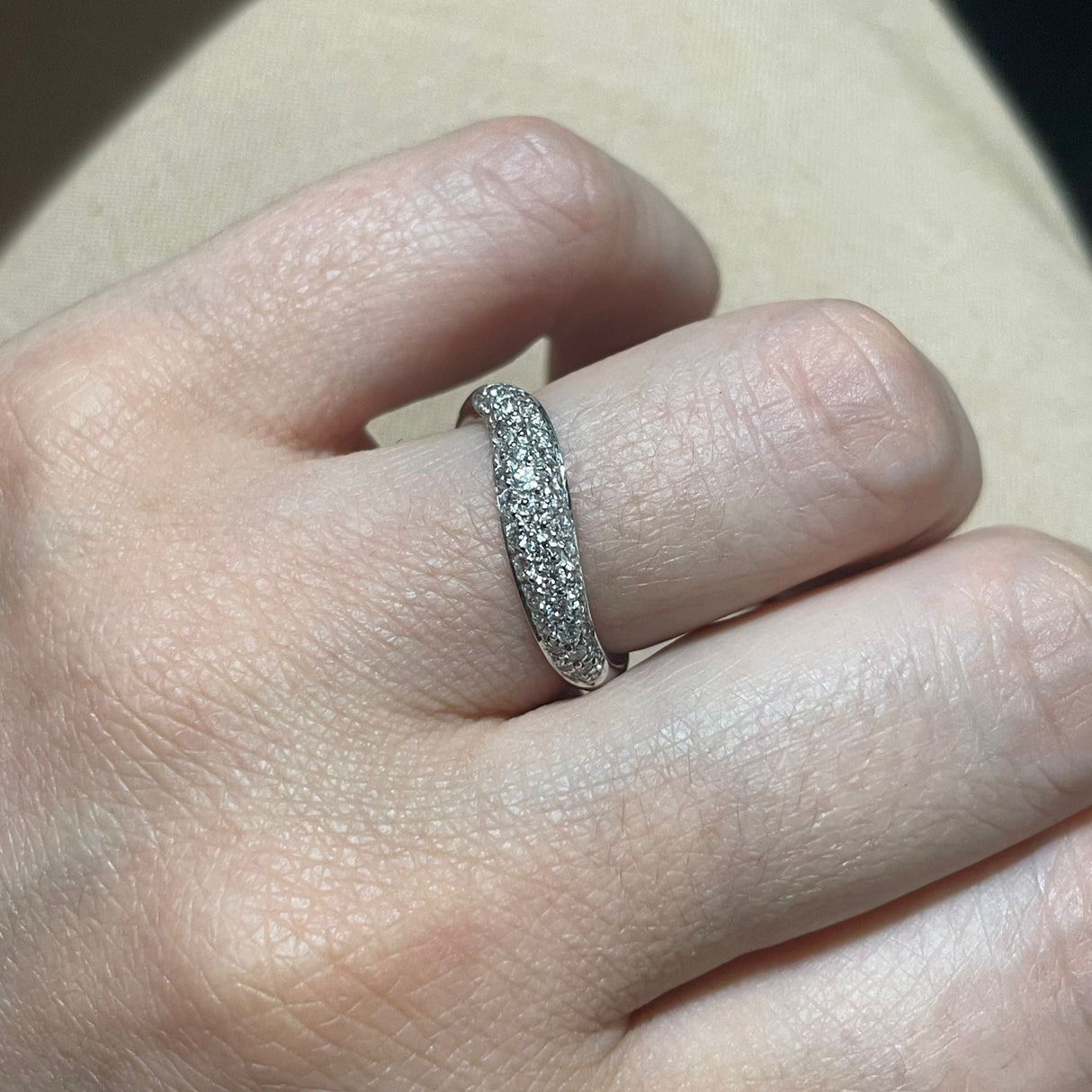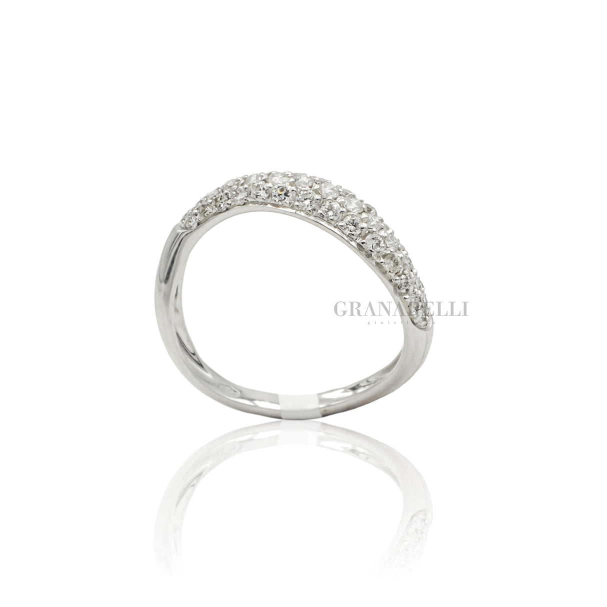 Anello fedina onda pavé di Diamanti in Oro Bianco