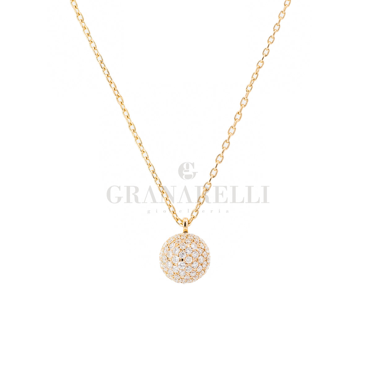Girocollo palla in oro rosa 18 kt e diamanti bianchi.
