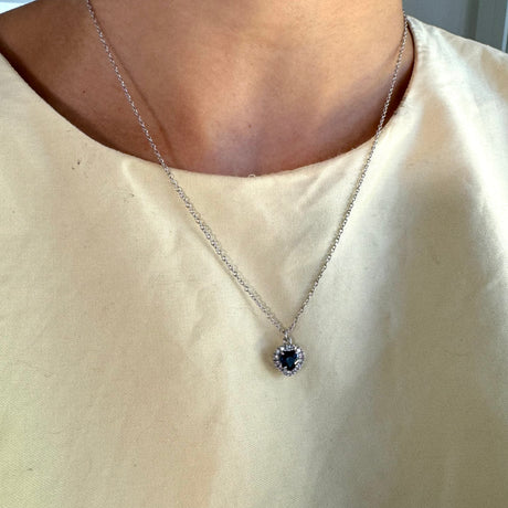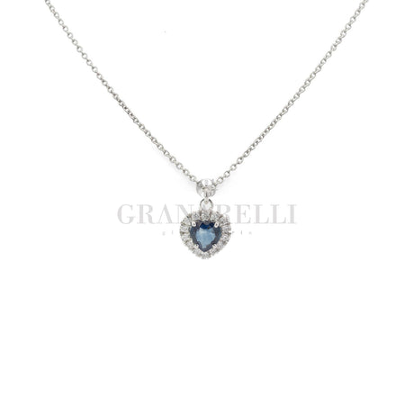 Collana cuore zaffiro e Diamanti in Oro Bianco