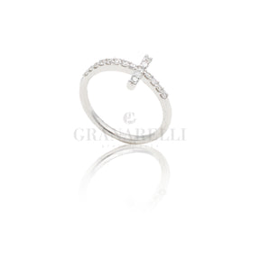 Anello Croce di Diamanti 0.30kt in Oro Bianco