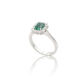 Anello in Oro Bianco 18 kt con Smeraldo di Zambia e Diamanti, creato in laboratorio dai nostri Orafi esperti.