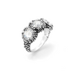 Giovanni Raspini -Tre zirconi dalla luminosa purezza incontrano l'eleganza contemporanea del decoro stile Perlage, dando vita a questo anello bello e versatile. Realizzato completamente a mano in azienda con la tecnica della fusione a cera persa.