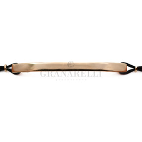 Bracciale barretta in oro rosa 18 carati su cordino nautico nero.