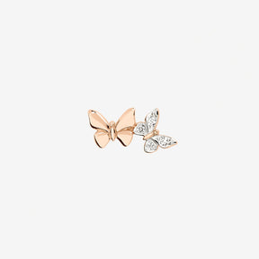 Orecchino stud Farfalla in oro rosa 9K con 4 diamanti bianchi (ct 0.04). Orecchino sinistro, mezzo paio.