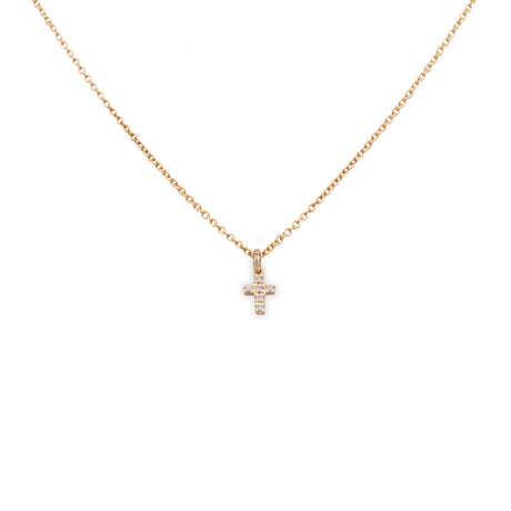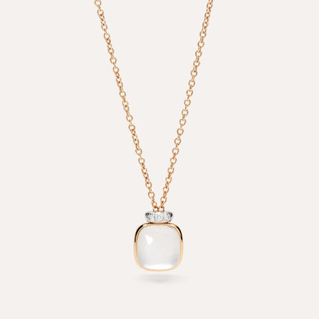 Collana Pendente Nudo Mini in Oro Rosa con Quarzo Milky e Diamanti