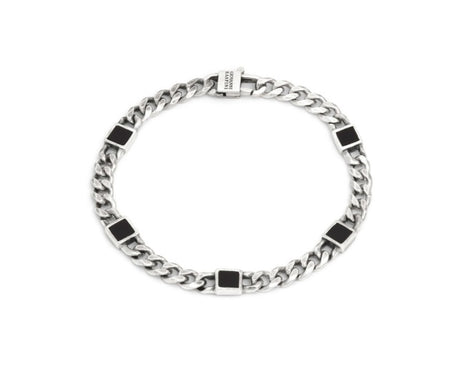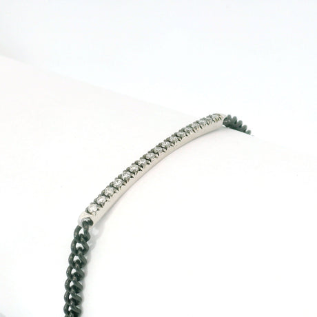 Bracciale Barretta Catena PVD Misura Grande, Oro Bianco Diamanti Bianchi