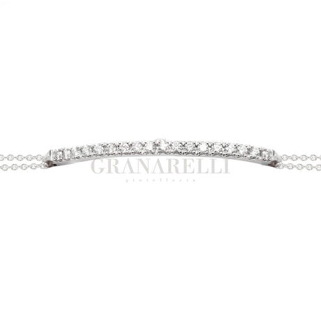 Bracciale Barretta Diamanti Bianchi Misura grande in Oro Bianco e catena, DIRITTA