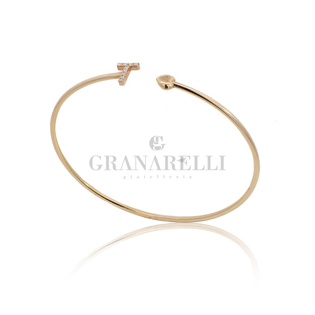 Bracciale Rigido Bangle in oro Rosa lettera T con Diamanti