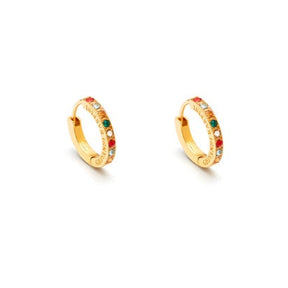 Giovanni Raspini - Ornati col decoro di piccoli inserimenti in zircone multicolore, ed istoriati col logo iconico di Giovanni Raspini, questi deliziosi orecchini in argento dorato montano una nuova chiusura "a scatto", pratica ed elegante. Realizzati a mano in azienda.