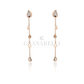 Orecchini pendenti in oro rosa 18 kt, goccia a lobo di pavè di diamanti.