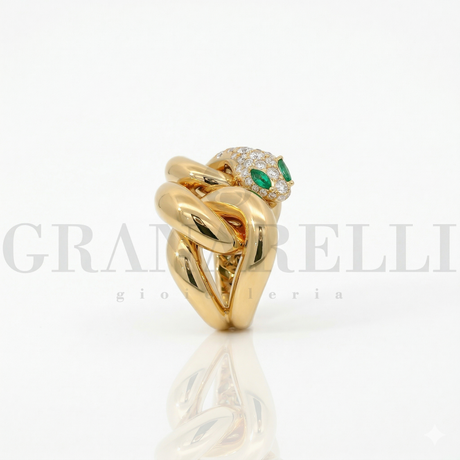 Anello Groumette Serpente Oro Rosa Smeraldi e Diamanti Crivelli