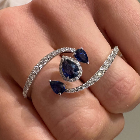 Anello Doppio Zaffiri Goccia e Diamanti Crivelli