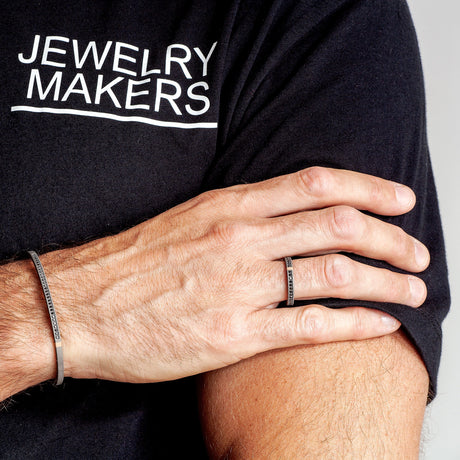 Bracciale Linear rigido in Titanio, Oro 18kt e 9 diamanti bianchi