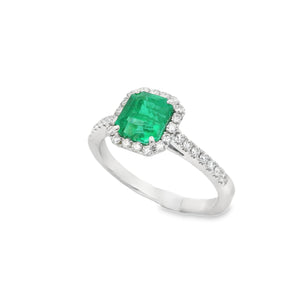 Anello Smeraldo 1.06kt e contorno Diamanti in Oro Bianco