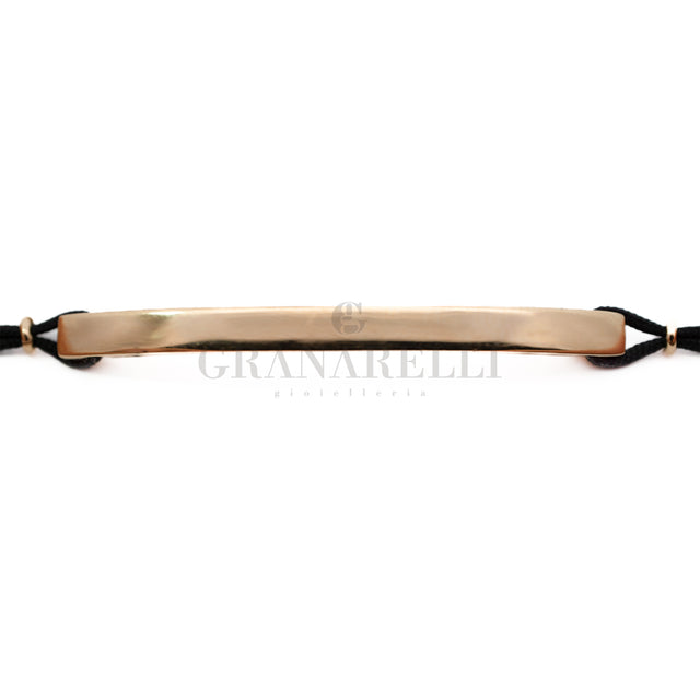 Bracciale barretta in oro rosa 18 carati su cordino nautico nero.