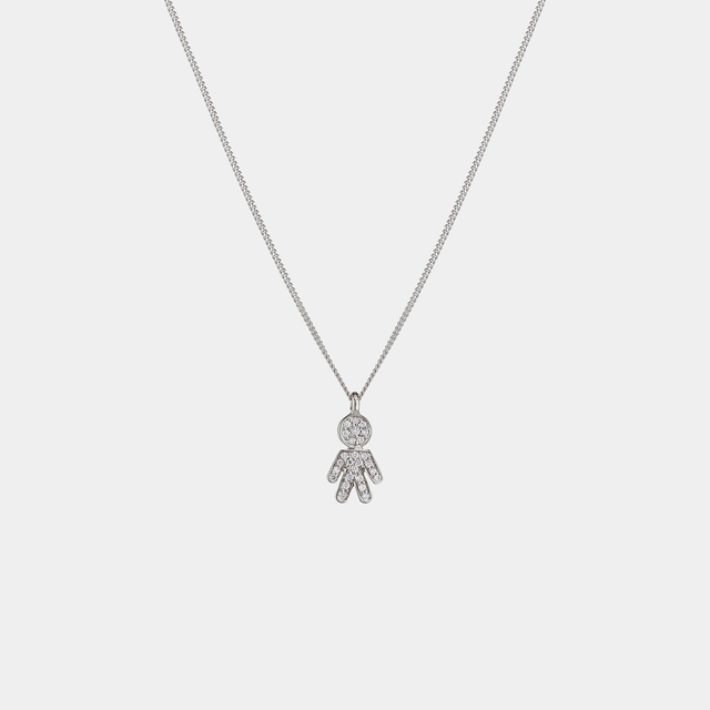 Girocollo in Oro Bianco 18kt e ciondolo Bimba con Pavé di brillanti.
