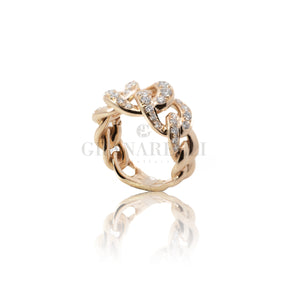 Anello catena groumette morbida in oro rosa 18kt con diamanti bianchi.