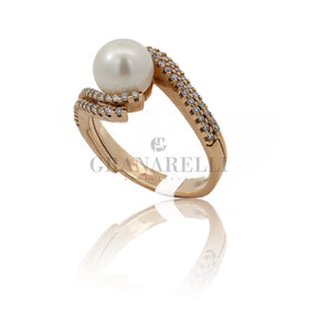 Anello in oro rosa 18 kt con Perla 7,5/8 e diamanti taglio brillante.