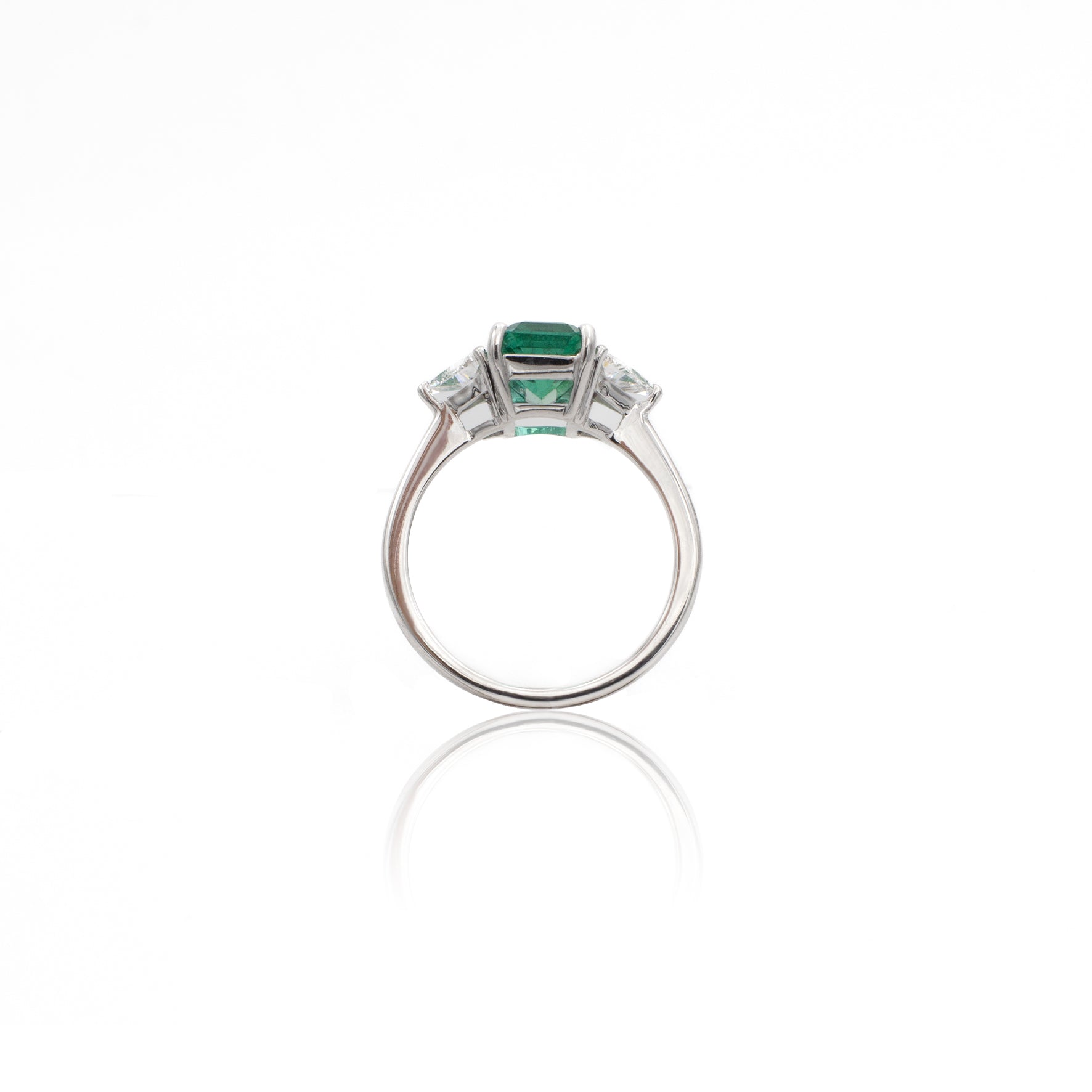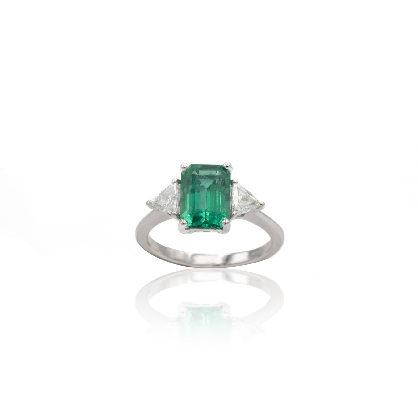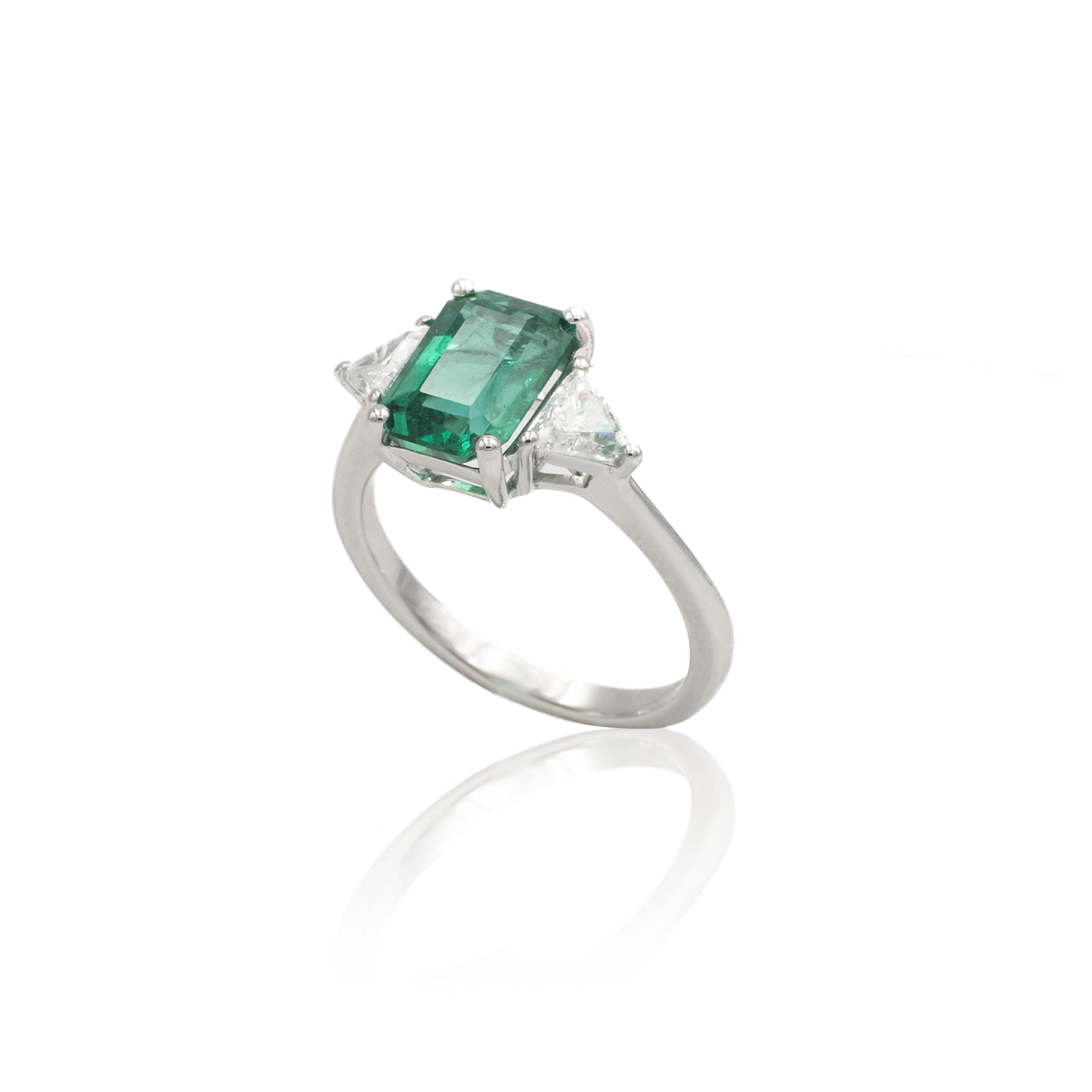 Anello in Oro Bianco con Smeraldo 1.90kt e Diamanti Trilliant