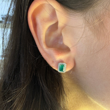 Orecchini Smeraldo e contorno di Diamanti in Oro Bianco