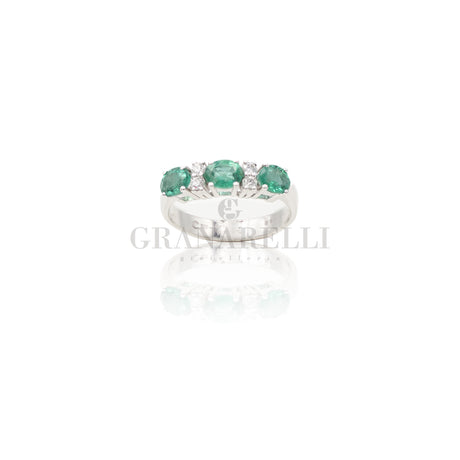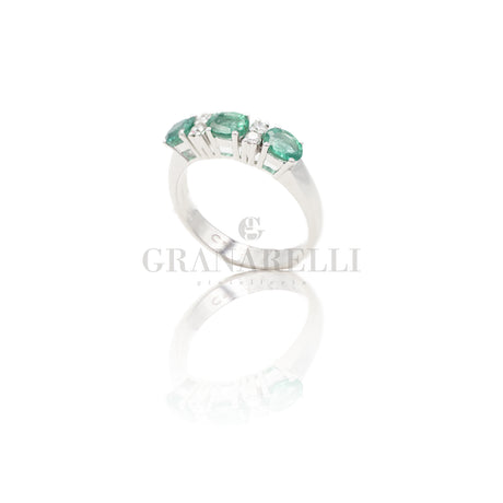 Anello Fedina 3 Smeraldi e Diamanti Bianchi