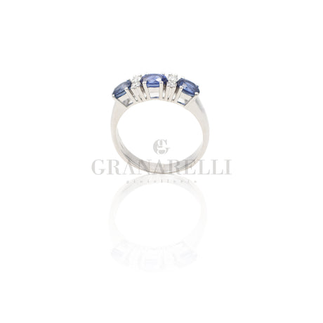 Anello Fedina 3 Zaffiri e Diamanti Bianchi