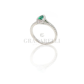 Anello Diamanti Navette in Oro Bianco e Smeraldi