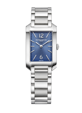 L'orologio da donna rettangolare Hampton M0A10476 unisce un’estetica raffinata al lusso dell’orologeria svizzera. Presenta un quadrante blu con finitura satinata soleil e una cassa in acciaio con finitura lucida abbinata a un bracciale in acciaio inossidabile.