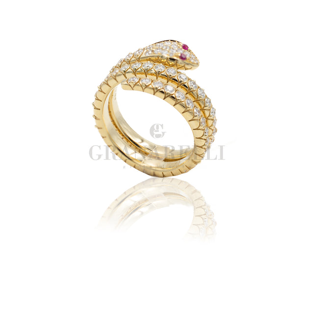 Anello Serpente Oro Giallo Rubini e Diamanti