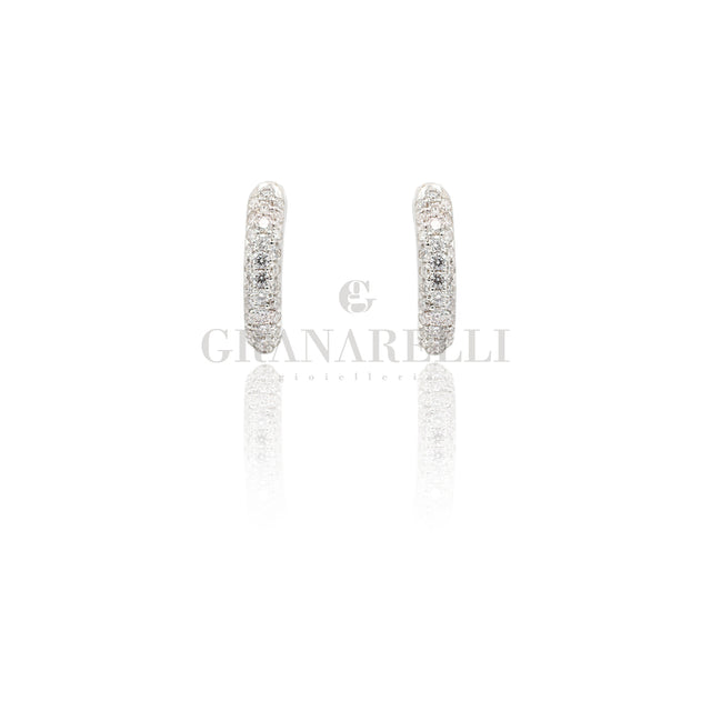 Orecchini Cerchietto Pavé Ovale Oro Bianco e Diamanti