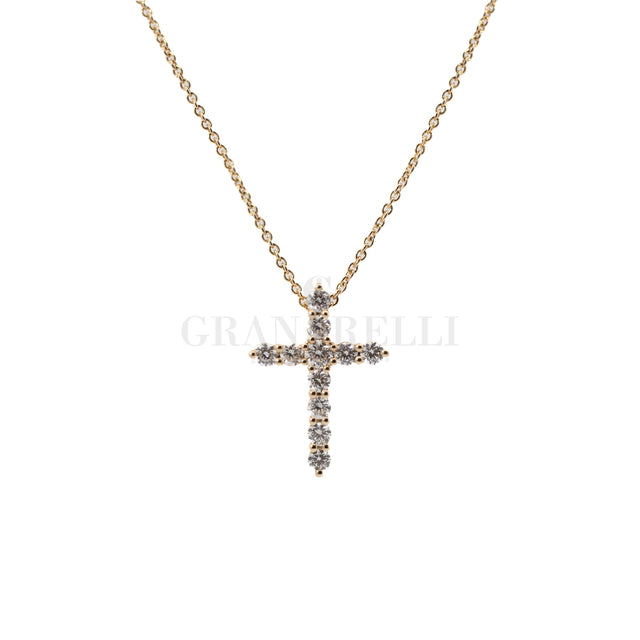 Collana in Oro Rosa 18 kt con croce di diamanti Bianchi taglio Brillante.