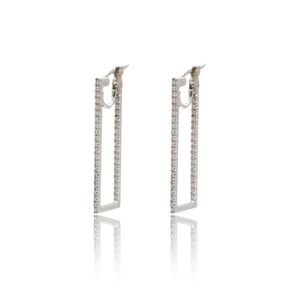 Orecchini Rettangolo con Barretta Diamanti in Oro Bianco