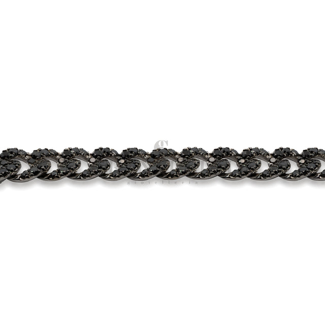 Bracciale maglia groumette in oro bianco 18 kt e diamanti neri da uomo cm 20.