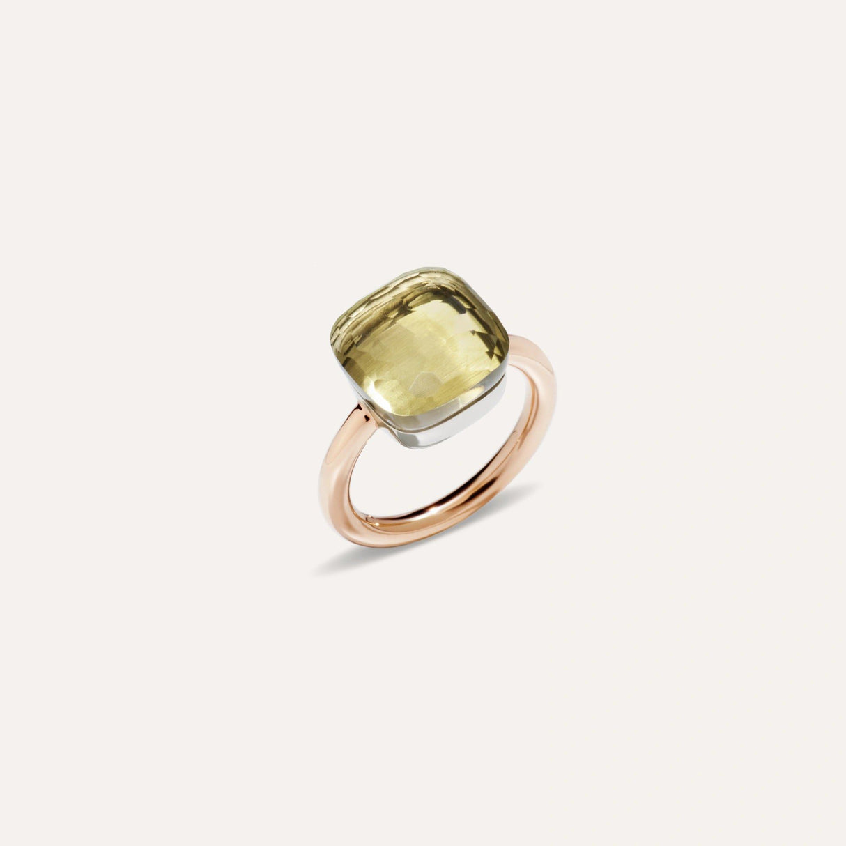 Anello Nudo Maxi In Oro Rosa Con Castone In Oro Bianco E Quarzo Lemon Sfaccettato.