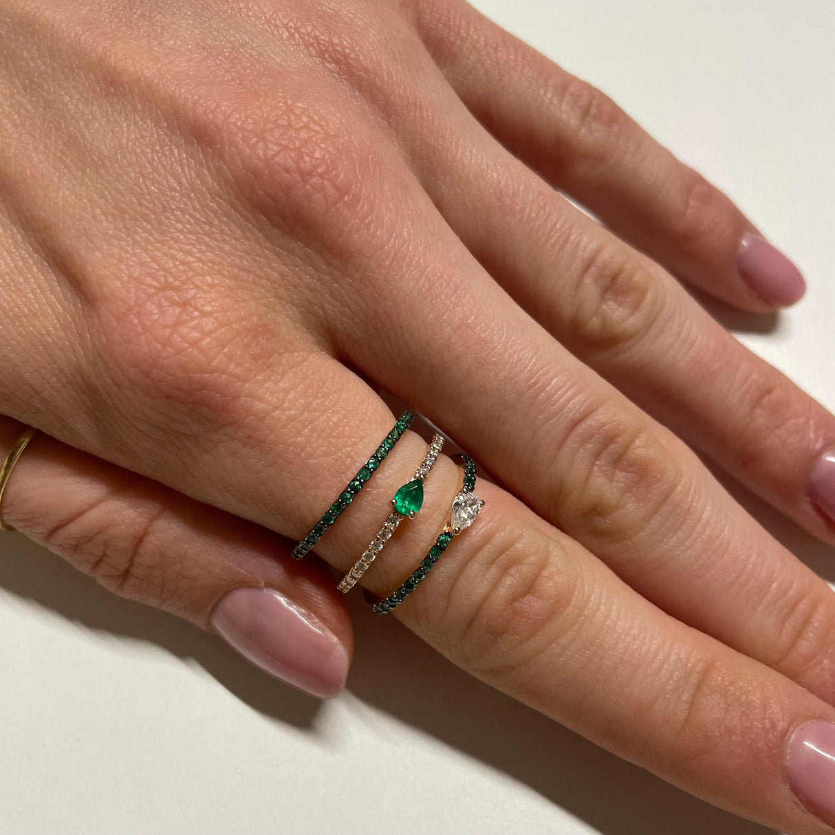 Anello Smeraldi e Diamante Goccia in Oro Rosa