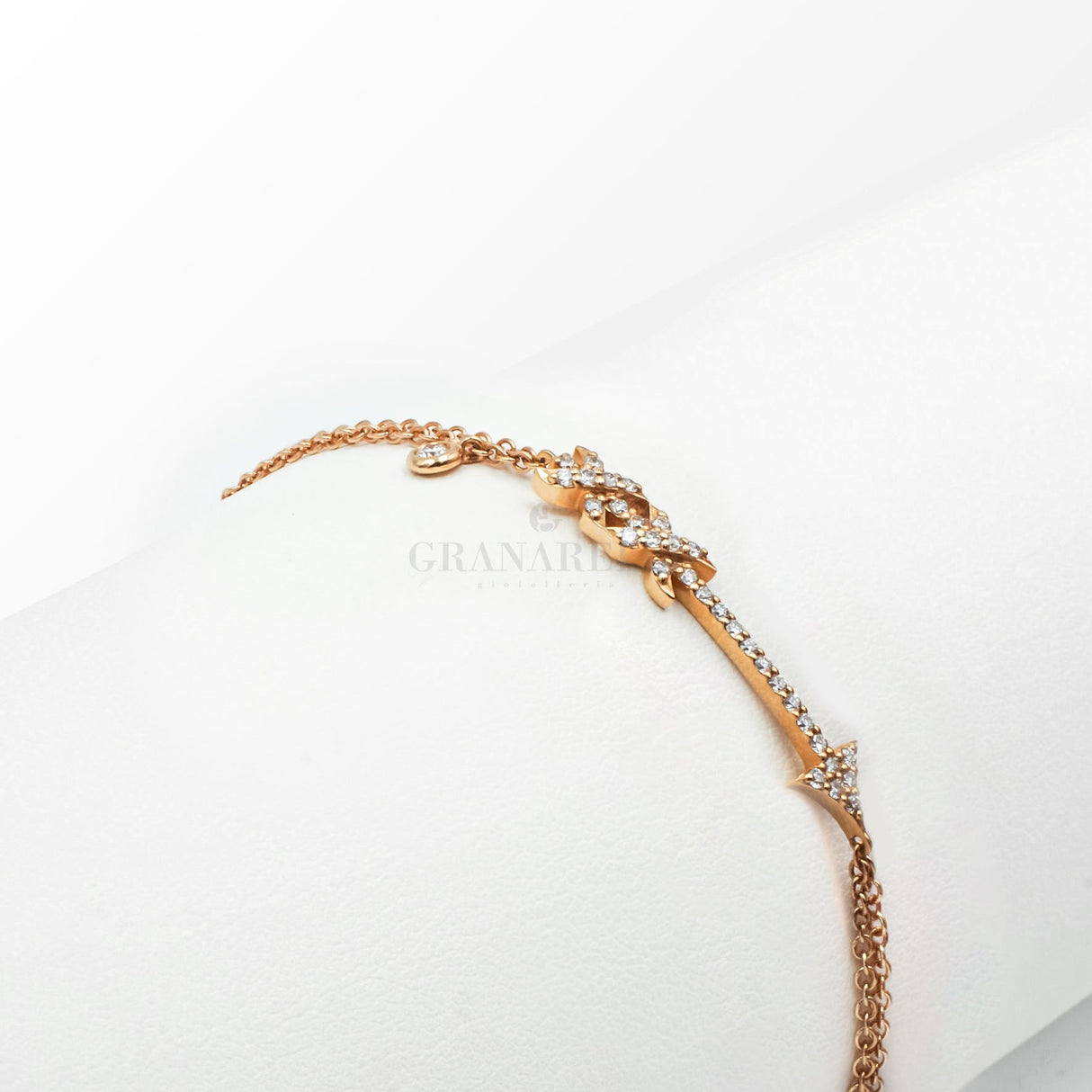 Bracciale in oro Rosa 18kt con Freccia pavè di diamanti e doppia catenina.