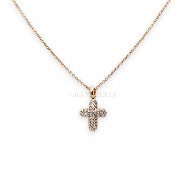 Collana in Oro Rosa18 kt con croce pavé di Diamanti Bianchi taglio brillante.