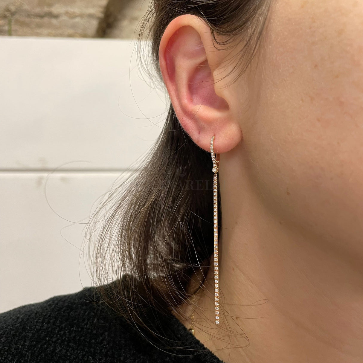 Orecchini pendenti in oro rosa 18 kt e barretta di diamanti bianchi taglio brillante.
