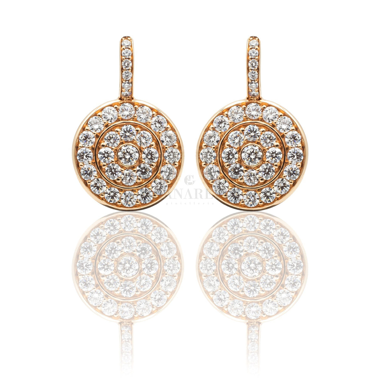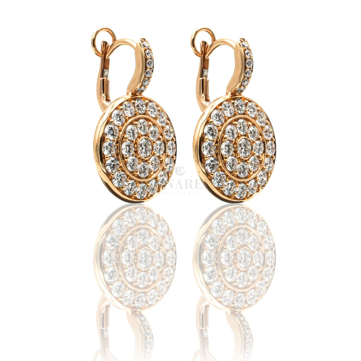 Orecchini boccola in Oro Rosa 18kt con tondo pavé di Diamanti bianchi taglio brillante.