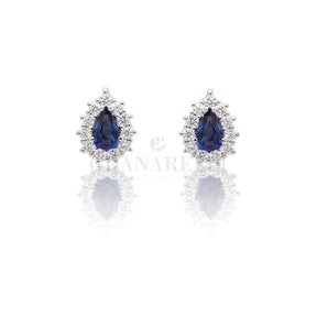 Orecchini con Zaffiri goccia ct 1,10 e Diamanti In Oro Bianco