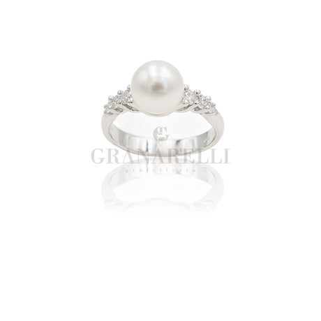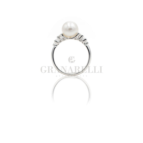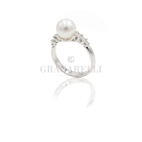 Anello Fiore con Diamanti in Oro Bianco 0,15ct