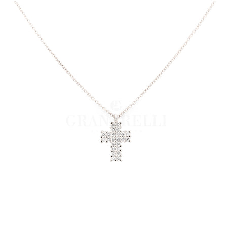 Girocollo Croce Pavè di Diamanti Oro Bianco