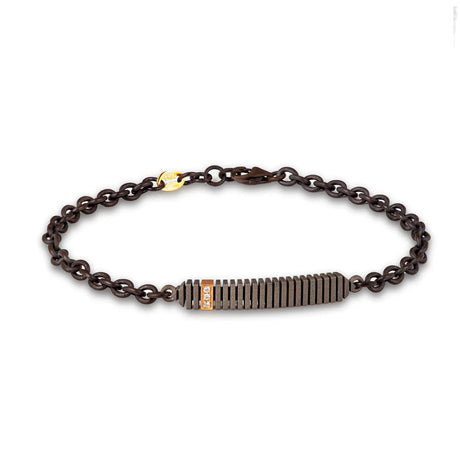Bracciale Linear con Targhetta in Titanio, Oro 18kt e diamanti