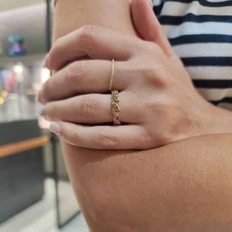 Fedina intrecciata in Oro Rosa e Diamanti Brown