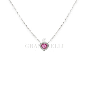 Girocollo Cuore Rubino e Diamanti in Oro Bianco