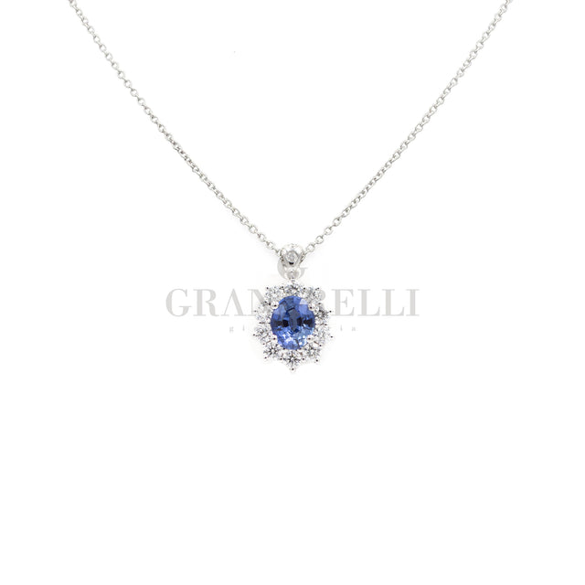 Girocollo in Oro Bianco 18 kt con Zaffiro Blu e contorno di Diamanti bianchi.