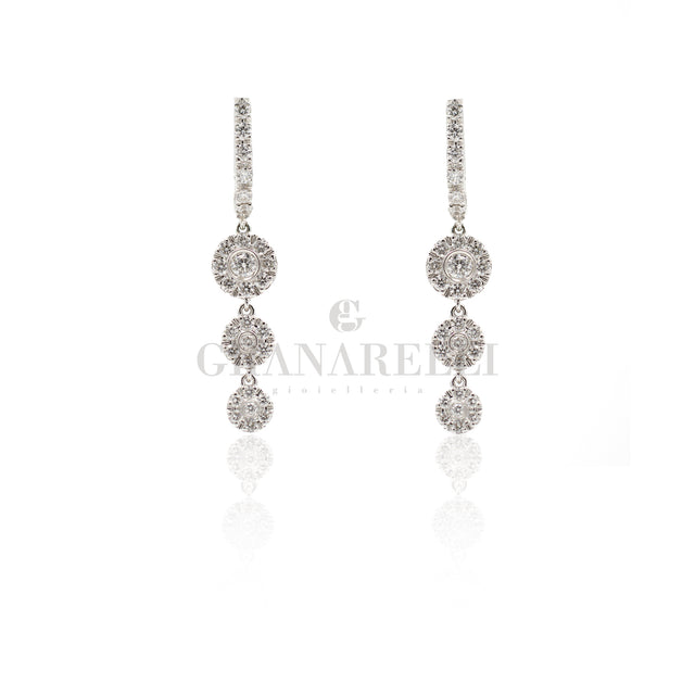 Orecchini a boccola in oro bianco 18kt con pendenti a scalare
